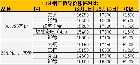 再让我们在看看12月份至今钢厂价格涨幅,基本已疯: