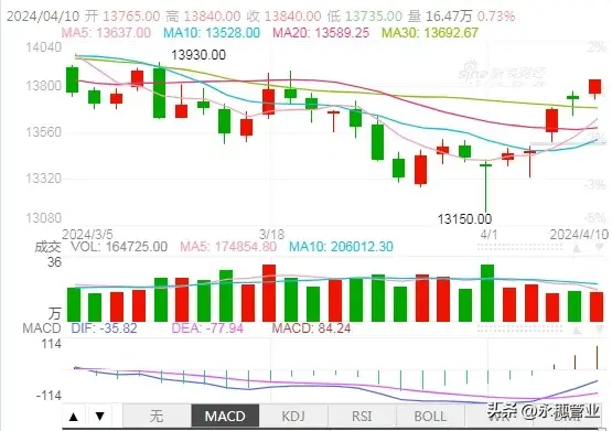 在清明假期中,伦镍上涨幅度冲接近800,节后的第一日开盘维持节前上涨的节奏,虽然在午后都回跌,但尾盘收盘回归上涨,整体上保持上涨。