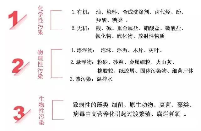 2、化学污染:当水体受到未经净化处理的各种工业废水、废渣的污染并达到一定浓度时,饮用或食用了这种水或含有这种水的食物时,可导致各种急、慢性中毒,甚至引起癌症。