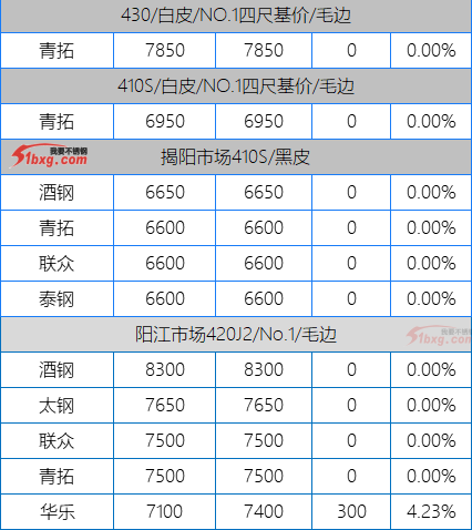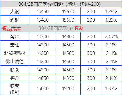 从报价来看,市场多次调涨报价后,整体累计涨200-300元/吨。从成交来看,304jbo电竞登录水管市场贸易商反馈出货尚可,如大板的一些较好规格于早上已被“抢走”,个别产地现货有缺,但市场贸易商反馈称,北部湾新材资源在下周有到货,今日订货能优价。看来,市场还是要在涨价的时候才有买卖的动力。另外,青山钢厂虽然未对304热轧启动新盘价,但是有消息称,钢厂允许代理以成本价14300元/吨补点大板现货!